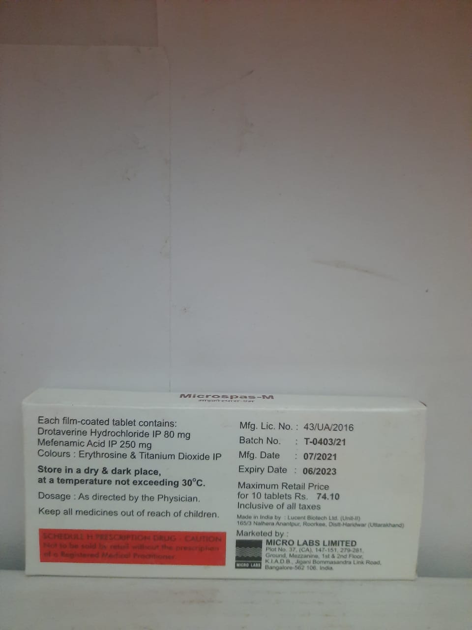 cramps, bloating and discomfort. Take Microspas-M Tablet as prescribed by the
